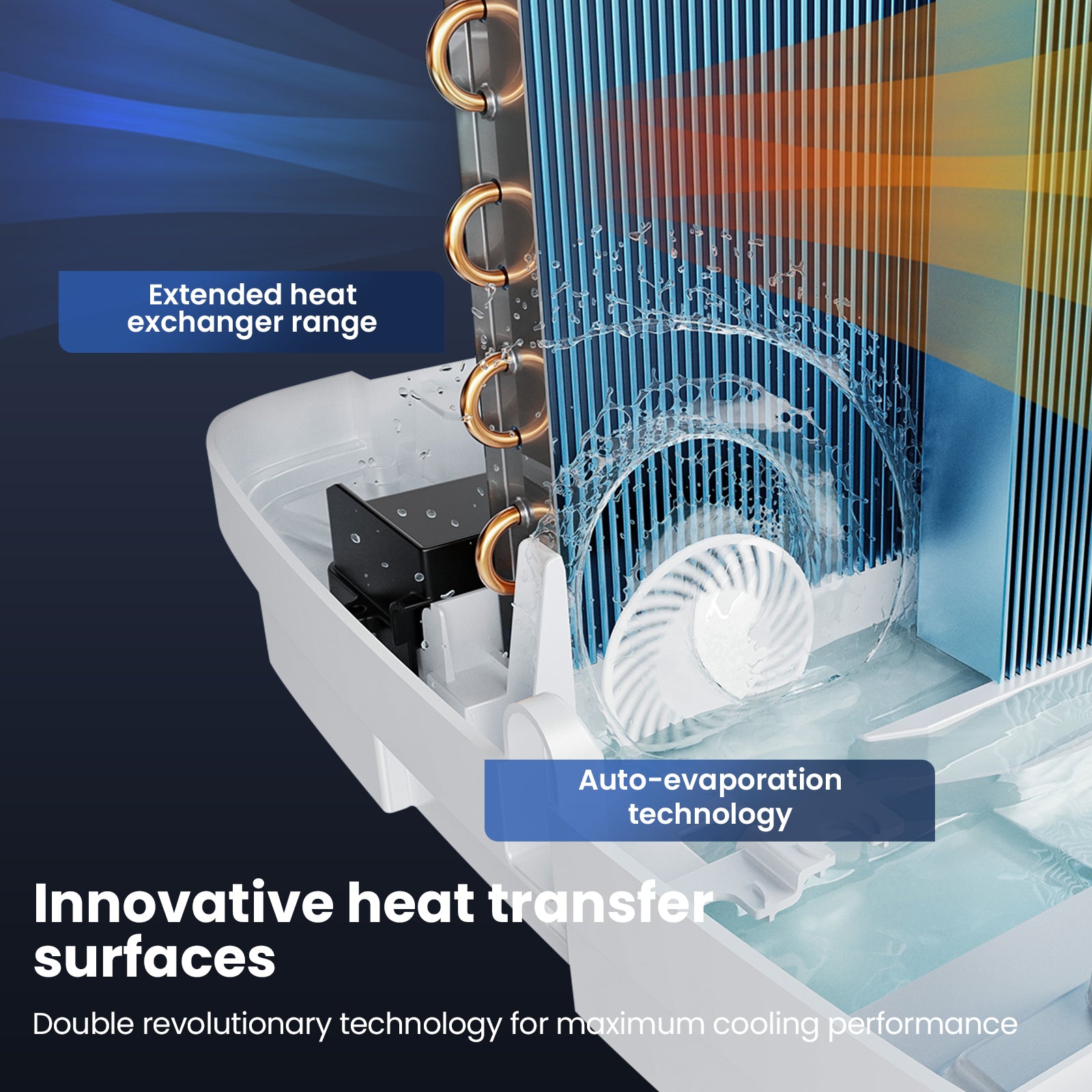 Utilizes auto-evaporation technology—most condensation evaporates and exits automatically with exhaust air.